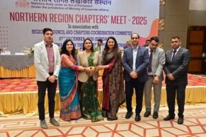 CMA Madhuri Kashyap has also played a significant leadership role in professional networking and entrepreneurship development. She served as the Former President of the International Navodaya Chamber of Commerce (INCOC) and currently contributes to the organization’s mission of promoting entrepreneurship, professional networking, and awareness of government schemes among young professionals and entrepreneurs.