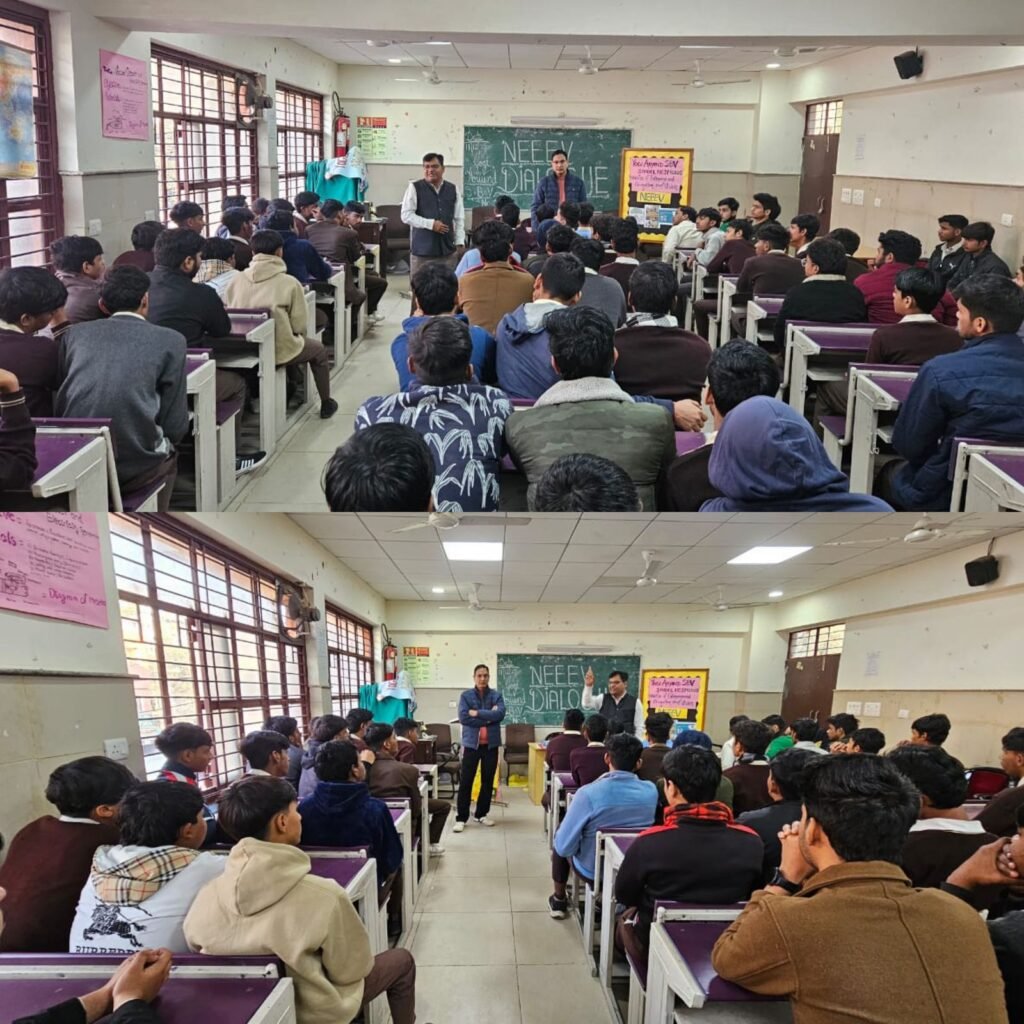 The program featured a series of interactive NEEEV Dialogue sessions where guest speakers and industry experts shared real-world insights into the startup ecosystem. Students participated in hands-on workshops focused on design thinking, problem-solving, and the “Startup of the Day” activity. These sessions encouraged learners to identify everyday challenges in their communities and propose innovative, technology-driven solutions.